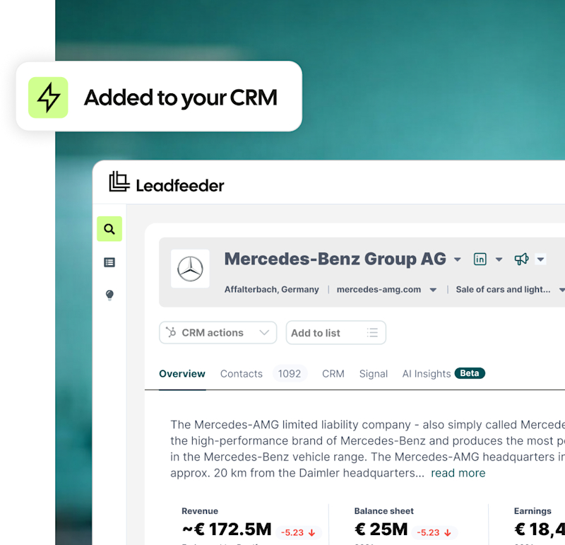 "Leadfeeder has become an important part of our lead generation process. In addition to our internal use, we have created custom feeds to share with our external commercial network (agents and distributors). With the recently added AI features, Leadfeeder has become even more useful, giving a lot of insights and precious data. Even though we do not use them for a number of reasons, the many integration capabilities add a lot of potential to this already powerful tool. Customer support is top-notch."