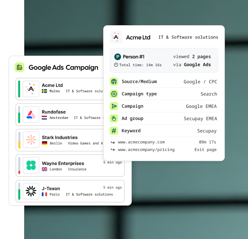 See which companies visit your website, understand their intent, and activate smarter targeting, retargeting, and sales follow-up.
