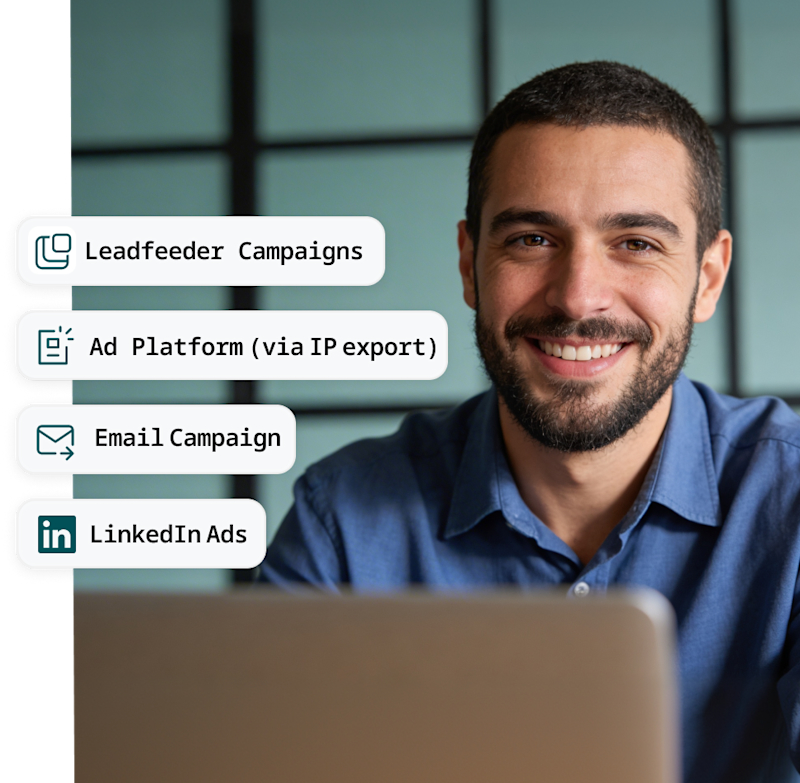 Activate your defined ICP audiences across any marketing or outreach campaigns, or use Leadfeeder Campaigns to bring high-fit companies to your website — not just more traffic.